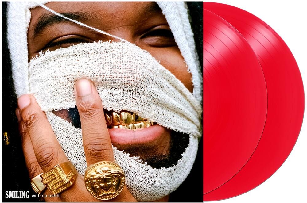 Vinyl release of Genesis Owusu - Smiling With No Teeth (Red Vinyl). Released through OURNESS PTY LTD and available on 2LP.
