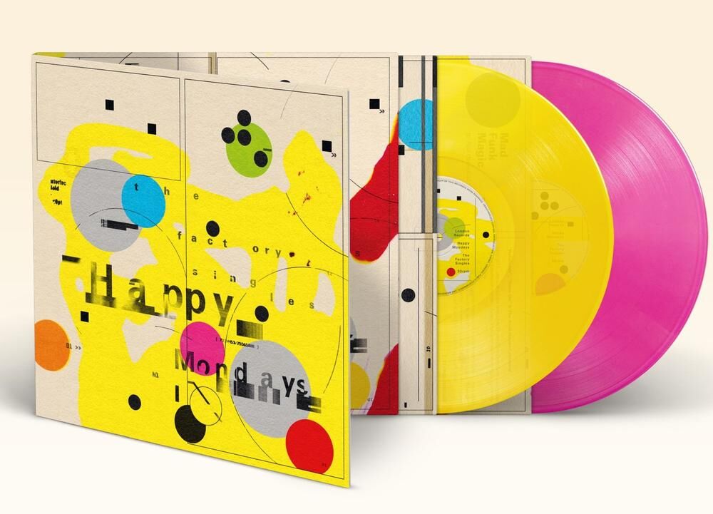 Vinyl release of Happy Mondays - Factory Singles: Best Of (Limited Yellow & Magenta Coloured Vinyl). Released through LONDON and available on 2LP.