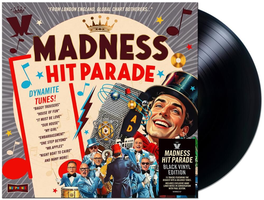 Vinyl release of Madness - Hit Parade (Classic Black Vinyl). Released through West Village Music Management Ltd and available on LP.
