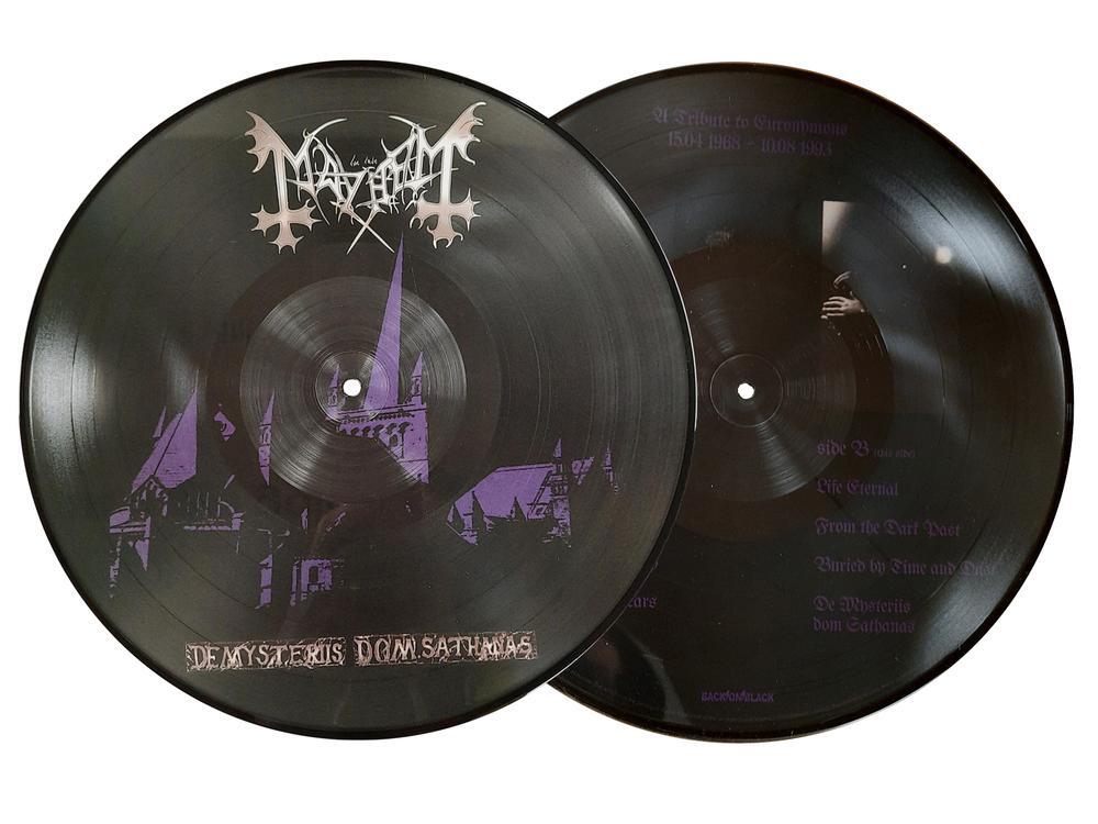 Vinyl release of Mayhem - De Mysteriis Dom Sathanas: Deluxe Picture Disc Edition (Vinyl). Released through BACK ON BLACK and available on LP.