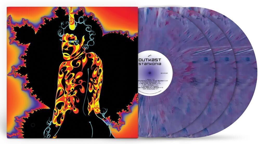 Vinyl release of Outkast - Stankonia: 25th Anniversary Edition (Limited Purple Marble Coloured Vinyl). Released through LAFACE and available on 3LP (Gatefold).