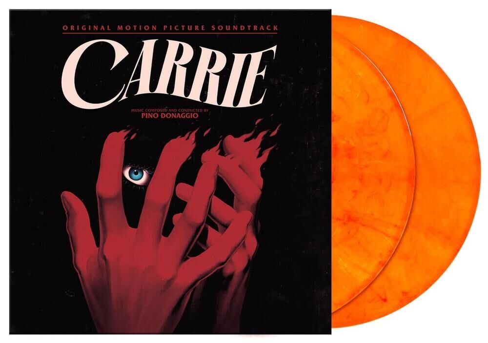 CARRIE Original Motion Picture Soundtrack features the expanded film music re-mastered and pressed to Red & Orange Smoke colored vinyl, with new artwork by Phantom City Creative, and old-style tip-on gatefold jackets with matte satin coating.