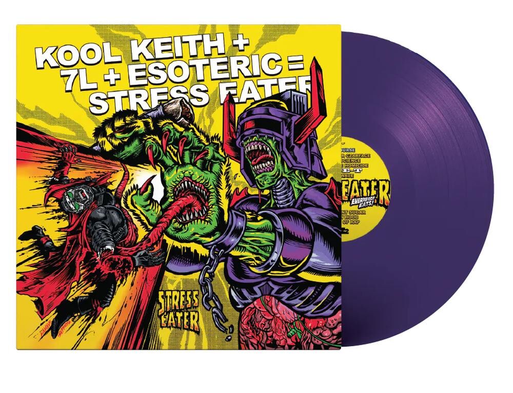 Vinyl release of Stress Eater (Dj 7, Kool Keith & Czarface) - Everybody Eats! (Limited Purple Coloured Vinyl). Released through SILVER AGE and available on LP.