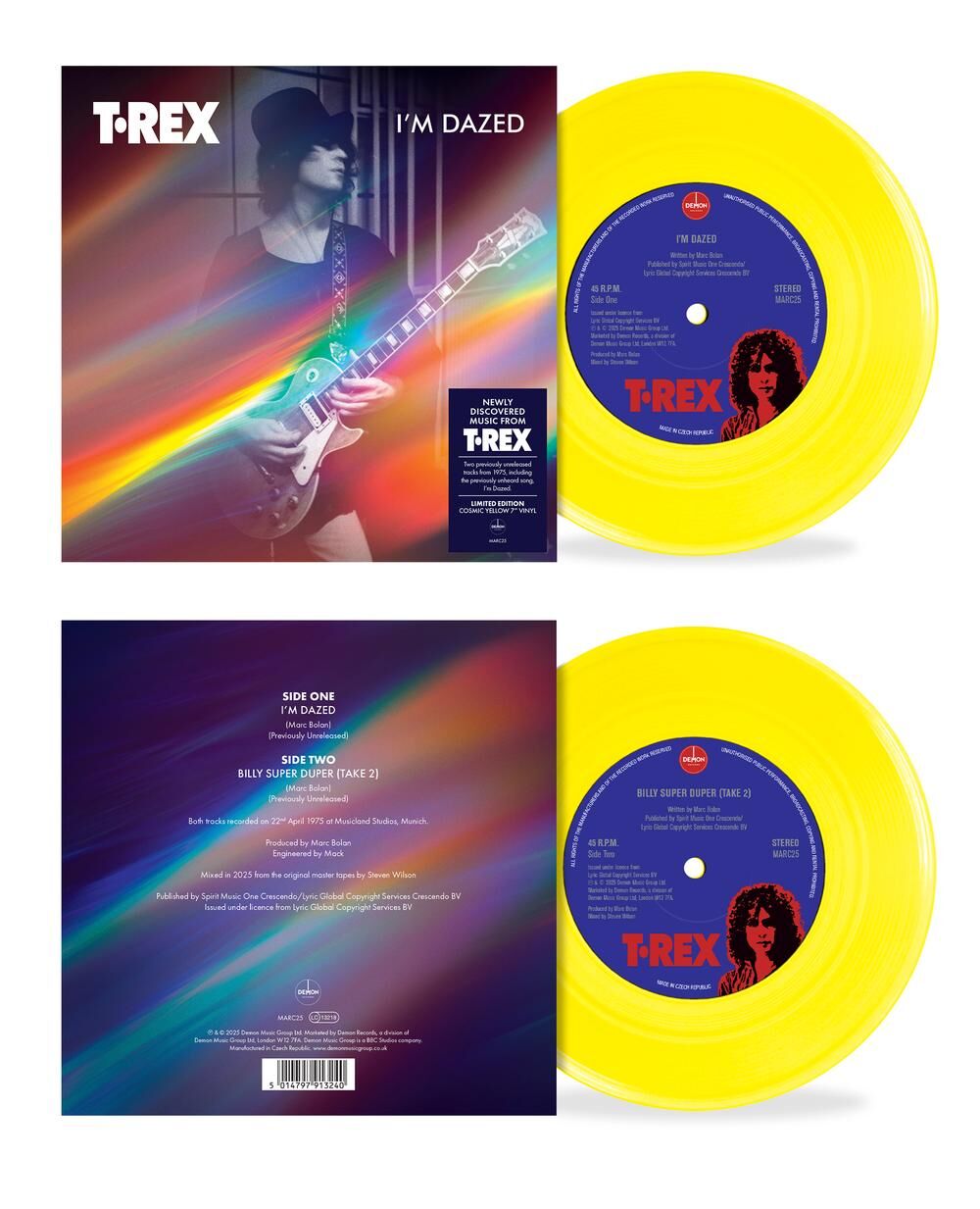 Vinyl release of T. Rex - I'm Dazed (Limited Yellow Vinyl). Released through DEMON and available on 7in.