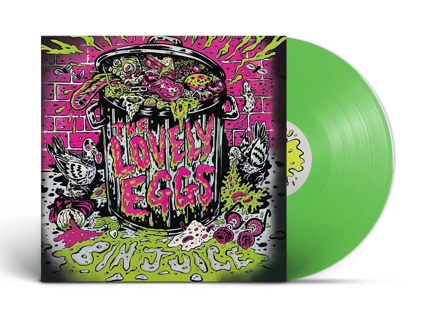 Vinyl release of The Lovely Eggs - Bin Juice (Neon Toxic Slime Green Vinyl). Released through Egg Records and available on LP.